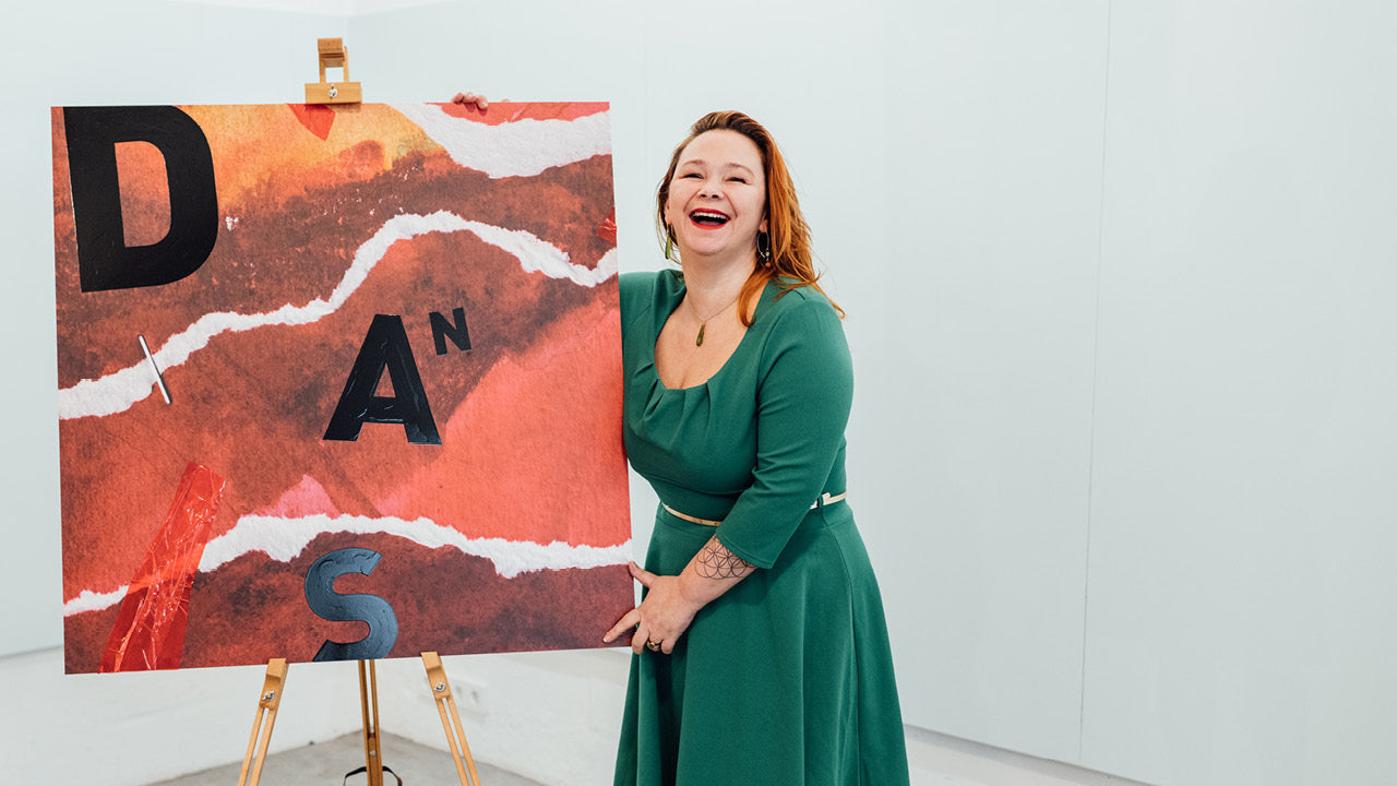 Nope. De kleuren, het woord en de compositie, alles is een verrassing. Jij ziet je kunstwerk pas als het helemaal af is tijdens de art reveal. Het enige wat ik je kan vertellen is dat het kunstwerk 90 x 90 cm wordt. :)